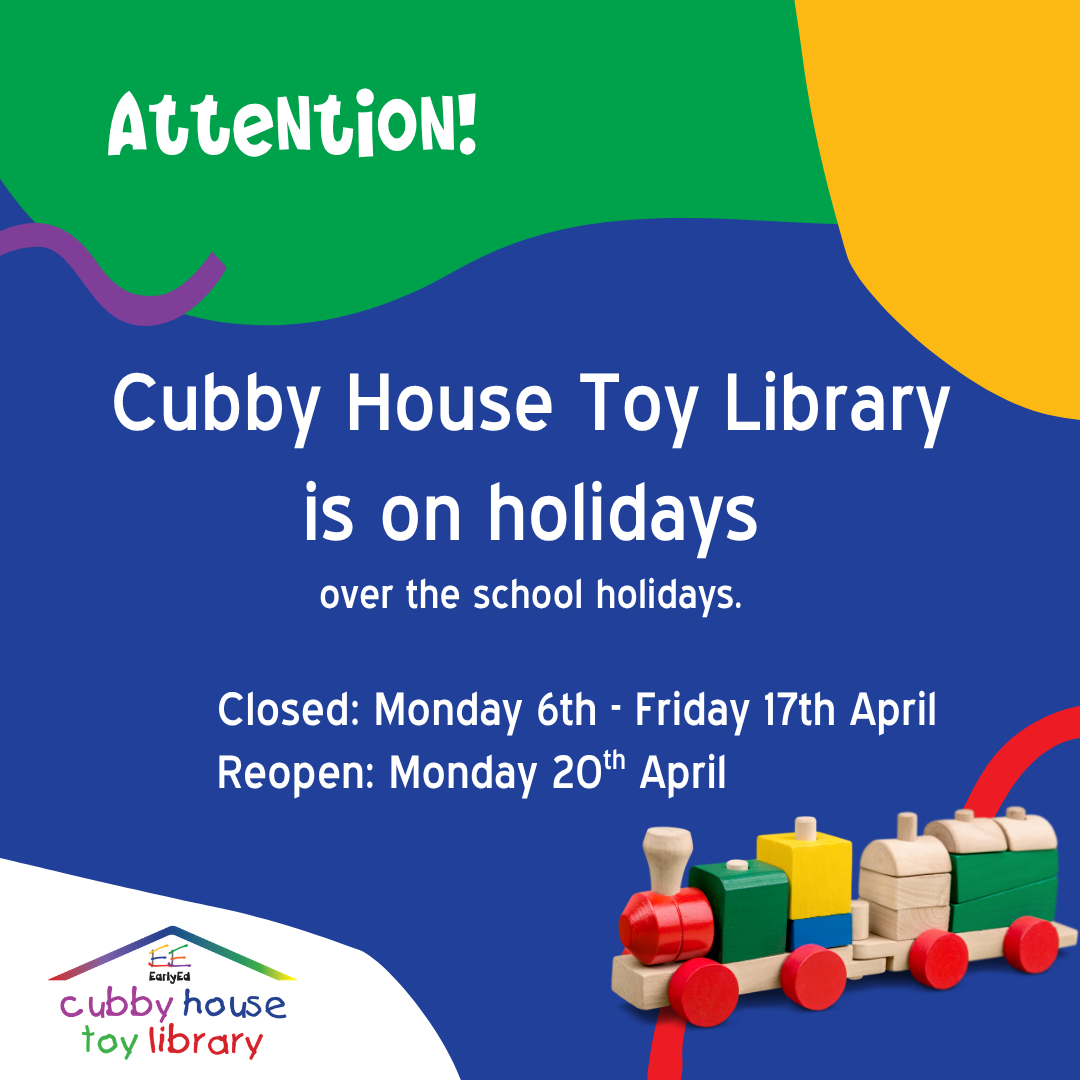 Cubby House Toy Library will be closed between 6 April & 17 April 2026.